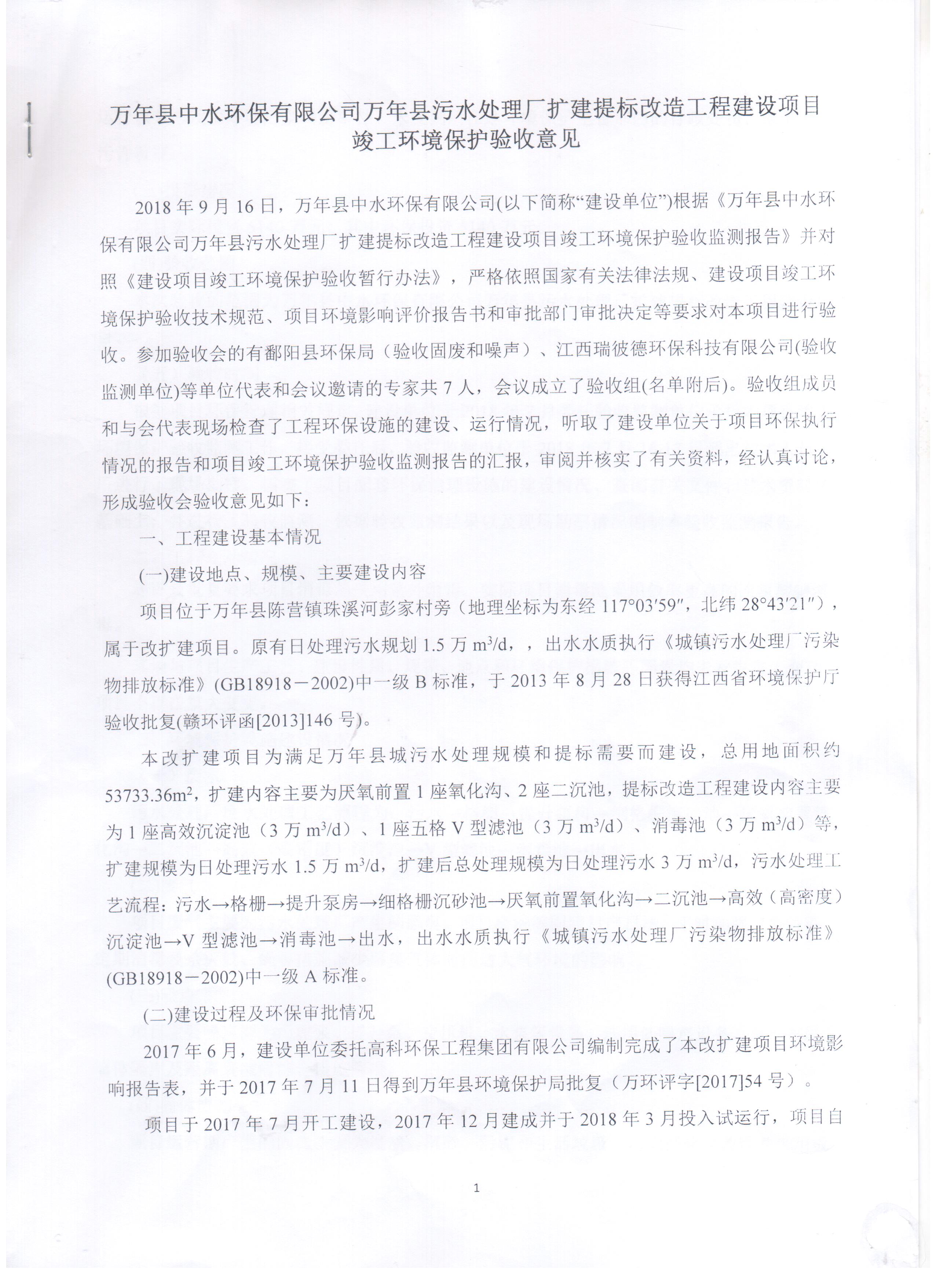根據《國務院關于修改〈建設項目竣工環境保護管理條例〉的決定》(國務院令第682號),以及環保部《關于發布<建設項目竣工環境保護驗收暫行辦法>的公告》(國環規環評[2017]4號),現將萬年縣中水環保有限公司萬年污水處理廠擴建提標改造工程項目竣工環境保護驗收報告公示如下: