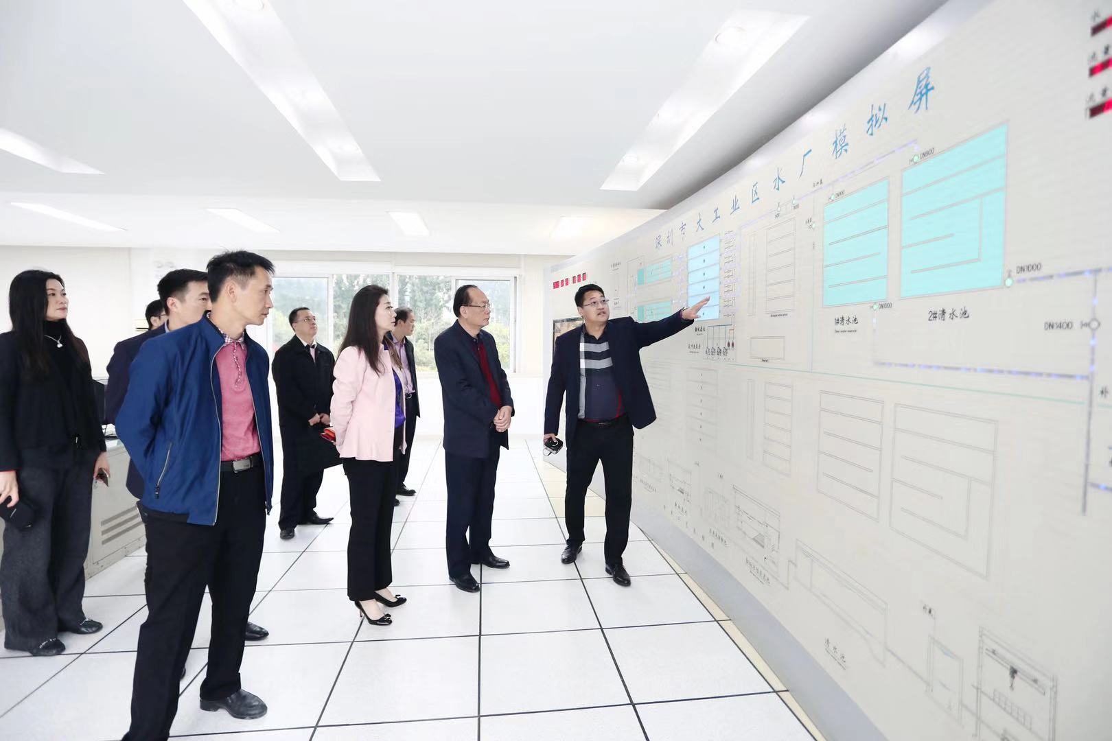 劉學(xué)聰書(shū)記一行首先前往大工業(yè)區(qū)水廠進(jìn)行參觀,對(duì)水廠制水工藝及現(xiàn)場(chǎng)管理進(jìn)行實(shí)地考察了解,隨后現(xiàn)場(chǎng)觀摩大工業(yè)區(qū)水務(wù)公司排水管網(wǎng)運(yùn)營(yíng)維護(hù)作業(yè)情況。在會(huì)議室座談交流中,工業(yè)區(qū)水務(wù)公司總經(jīng)理王春雷詳細(xì)介紹了公司供排水一體化運(yùn)營(yíng)模式的情況、公司近幾年取得的成效及未來(lái)發(fā)展規(guī)劃等情況。劉學(xué)聰書(shū)記一行還考察了深圳金達(dá)環(huán)境控股有限公司。