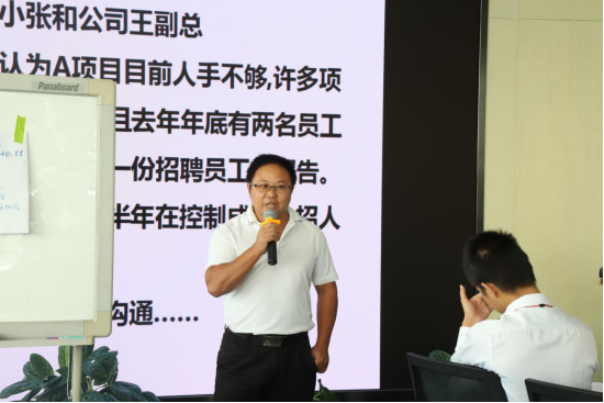 “我知道了,答案是God!”張翔和小組成員高高舉起雙手,向培訓(xùn)師激動地說道。他們是第三個解答出“總經(jīng)理”提問的小組,在培訓(xùn)現(xiàn)場可以看到,6個小組正齊心協(xié)力、集思廣益投入到培訓(xùn)師給出的“總經(jīng)理——經(jīng)理——員工”尋找“答案”的情景訓(xùn)練中。這是近日金達(dá)環(huán)保全員培訓(xùn)中的一幕。