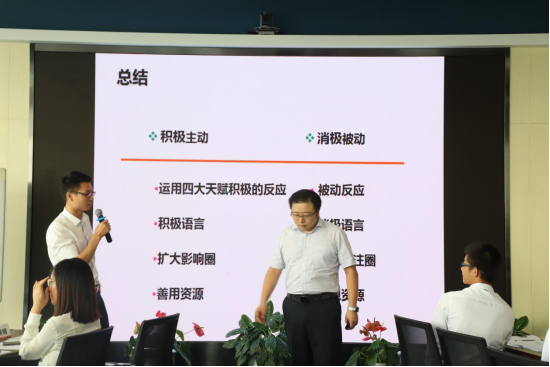 培訓(xùn)期間,馮南石講師通過華為、中興、騰訊等具體案例分析,自身經(jīng)歷分享、剖析,現(xiàn)場問答互動、視頻、做手指操、小組積分、冠軍組發(fā)放獎品等方式,全面、系統(tǒng)、深刻地講授了養(yǎng)成高效能人士的七個習(xí)慣,通過改變自我習(xí)慣不斷提高快速解決問題的能力。現(xiàn)場氛圍輕松和諧,學(xué)員熱情高漲,聚精會神聆聽講課內(nèi)容,積極主動參與小組討論、答題、項目活動。