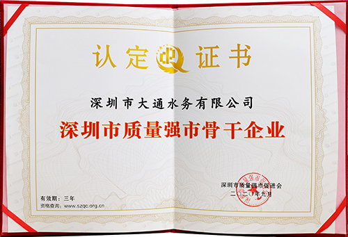 成立于2003年的大通水務(wù),是國內(nèi)最早以提供水務(wù)項(xiàng)目專業(yè)化運(yùn)營服務(wù)為主業(yè)的市場化水務(wù)企業(yè),目前其業(yè)務(wù)已覆蓋城市供排水一體化、排水設(shè)施運(yùn)營維護(hù)、地下管廊運(yùn)營維護(hù)、市政供水、生活污水處理、工業(yè)廢水處理、中水回用、污泥處置、水體修復(fù)、水環(huán)境治理項(xiàng)目的投資、建設(shè)和運(yùn)營等領(lǐng)域。多年來,大通水務(wù)在高質(zhì)量可持續(xù)發(fā)展之路上行穩(wěn)致遠(yuǎn),行業(yè)影響力和社會影響力不斷攀升,所獲榮譽(yù)累累,從2013年至2018年連續(xù)六年獲得中國水業(yè)市政水務(wù)運(yùn)營服務(wù)及市政排水管網(wǎng)專業(yè)運(yùn)營標(biāo)桿企業(yè)稱號;2018年12月,榮獲首屆“深圳品牌百強(qiáng)”榮譽(yù);2019年,公司董事長王小沁榮獲深圳市質(zhì)量領(lǐng)域的最高個(gè)人榮譽(yù)“深圳市質(zhì)量強(qiáng)市金質(zhì)獎?wù)?rdquo;。